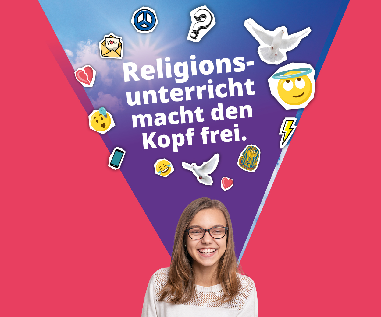 Religionsunterricht kann Schülerinnen und Schüler bereichern und für viele wichtige Fragen des Lebens öffnen. Gerade in unserer Gegenwart, in der es im Zusammenleben zunehmend auf Toleranz und Respekt gegenüber weltanschaulichen und religiösen Wertvorstellungen anderer ankommt, ist es wichtig, auch die eigenen religiösen Hintergründe zu kennen. Daher lautet das neue Motto der Evangelischen Kirche „Religionsunterricht macht den Kopf frei“. Die Jugendlichen sollen frei entscheiden können, was sie denken und glauben möchten. Der Religionsunterricht ist der Ort, an dem sie genau diese Freiheit erfahren.