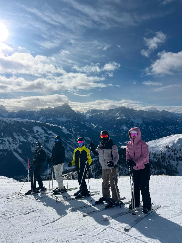 In unserem Kurs waren sowohl Anfänger*innen als auch Fortgeschrittene. Gerade für diejenigen, die zum ersten Mal auf Skiern standen, war der Anfang alles andere als leicht. Muskelkater, Unsicherheit und Zweifel gehörten dazu. Besonders der zweite Tag war für viele der härteste. Doch genau hier zeigte sich: Durchhalten lohnt sich. Mit jedem Tag wurden wir sicherer, mutiger und besser, bis wir am letzten Tag am liebsten gar nicht mehr von der Piste herunter wollten.