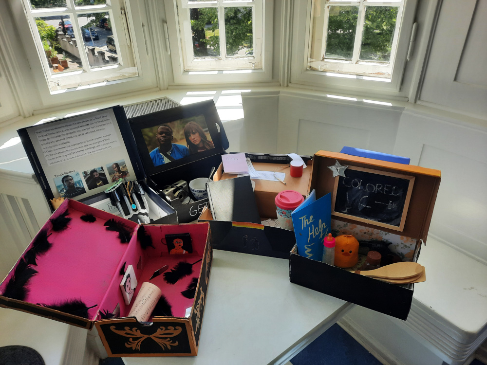 Im Rahmen einer Projektarbeit im Wahlpflicht Englischkurs in der 10. Klasse erstellten die Schüler*innen Filmpräsentationen zum Thema Diversität in der Filmbranche. Dabei konnten die Lernenden frei wählen, solange die Filme bestimmte Kriterien im Sinne der Diversität erfüllten: als analoge Präsentationsform haben die Schüler*innen Filmboxen erstellt. Der Gewinnerfilm wurde anschließend demokratisch gewählt und zum Schuljahresabschluss auch geguckt.