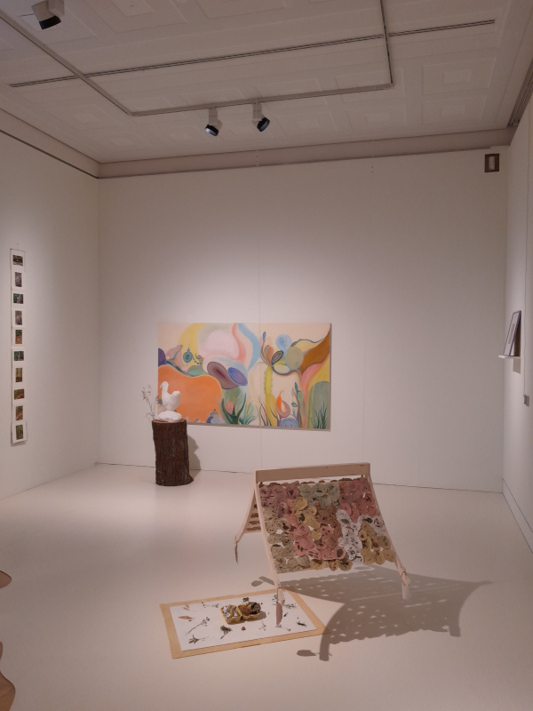 Zu den Ausstellenden gehört auch die Künstlerin Yuni Kim, die ihr Atelier an unserer Schule eingerichtet hat. Außerdem sind Werke von Schüler*innen zu sehen, die in den offenen Ateliers gestaltet wurden und sich auf die Werke der Kunstschaffenden beziehen.