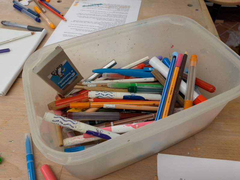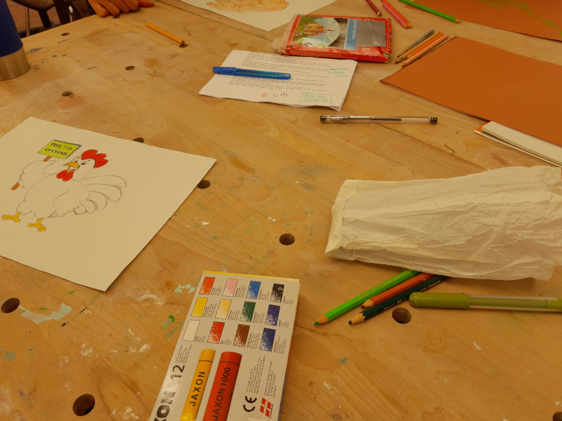 Kurz vor den Herbstferien jedoch fand ein weiterer Workshop für das Aska-Kollegium statt, der den Titel "Interkulturelles kreatives Arbeiten – ein Workshop zur Mensch-Tier-Beziehung" trug. Ausgangspunkt waren Werke der Künstlerin, die sich ebendieser Beziehung widmen. Es wurde gezeichnet und gemalt, wobei originelle und sehr unterschiedliche Ergebnisse entstanden sind.
