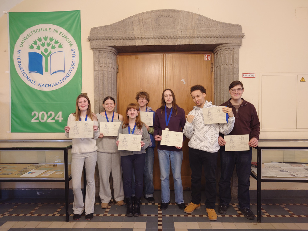 Deshalb gratulieren wir Ecrin, Hatice, Amira, Leni, Michelle, Romeo, Jonathan (WF 10) sowie Karlotta, Linda, Anton, Isabella, Clara, Johann, Akim und Sophie (Grundkurs Jg. 11) herzlich zu diesem Erfolg!